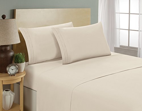 1800 Series Egyptian Collection 3 Line Microfiber 4 Piece Bed Sheet Set (King, Cream)