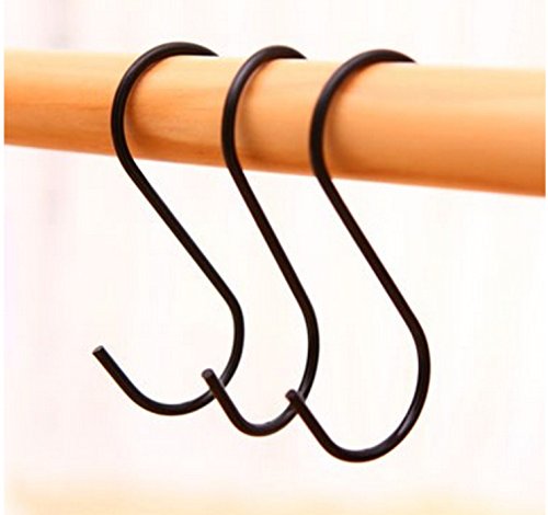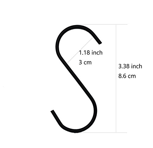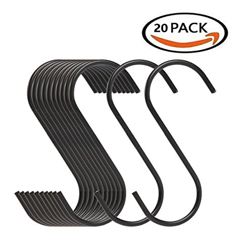 Lysas Stainless Steel Heavy-Duty S Shaped Hooks Hangers for Kitchen, Bathroom, Bedroom and Office (20-Pack,Black Color)