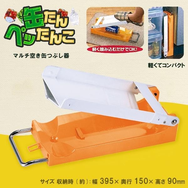 空き缶を置いて、軽く踏み込むだけでOK。かさばる空き缶をぺたんこにします。 製造国:日本 素材・材質:本体プレート:ポリカーボネート樹脂足踏みプレート:スチール材(メラミン樹脂焼付塗装)スライドアーム:鉄(クロームめっき) 商品サイズ:収納時(約):幅395×奥行150×高さ90mm ※サプライヤー直送品 ※2019年2月下旬入荷分予約受付中【商品名】パール金属 缶たんペッたんこ マルチ空き缶つぶし器 HB-2448