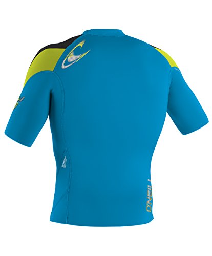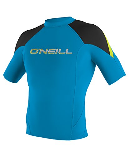 O'NEILL WETSUITS UV SUN PROTECTION MEN'S HAMMER SHORT SLEEVE CREW RASHGUARD, SKY/BLACK/YELLOW, LARGE