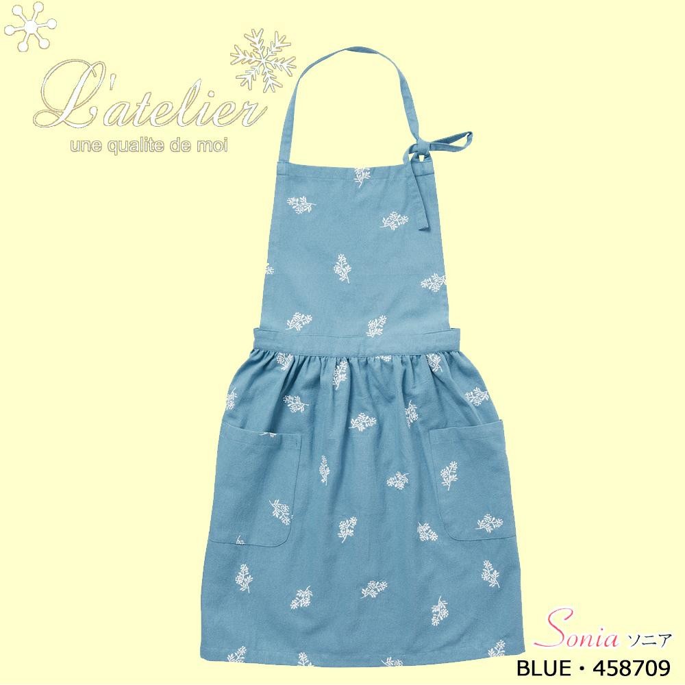 木の実柄の刺繍をあしらったナチュラルなデザインで、可愛らしい雰囲気のエプロンです。 製造国:インド 素材・材質:綿100% 商品サイズ:身丈:約74cm、ヨコ:約102cm 仕様:洗濯方法:洗濯機の弱水流設定、または弱い手洗い ※サプライヤー直送品【商品名】Latelier(ラトリエ) Sonia ソニア エプロン BLUE・458709
