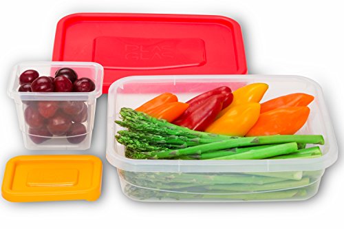 * REUSABLE - MADE OF DURABLE MATERIALS: The PLAS GLAS SET is made of food-grade ABS plastic that is BPA-free; with clear see-through bases and color-coded soft-touch lids, they keep food fresh and safe while being able to see what is inside; since they are microwave, freezer, and dishwasher safe, they are recyclable and will last a long time with repeated use