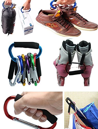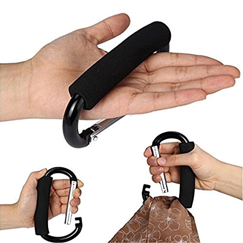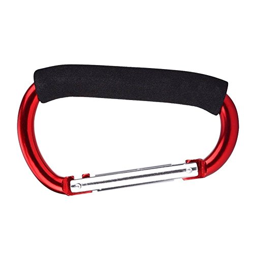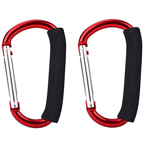 SunKni 2 Pack Grocery Bag Holder with Soft Foam Grip, Multi Purpose Snap Hook for Shopping Bag Baby Stroller Mommy, D-Shape Handle Carrier Tool Organizer Accessories (Red)