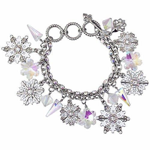 Ritzy Couture by Esme Hecht Snowflake Two-Strand Charm Bracelet Decorate your wrist with a flurry of snowflakes this winter! While one strand hosts charming crystal-dotted snowflakes and iridescent glass charms, the second is studded with clear rhinestones that give a glistening appearance. Adjust the bracelet to your liking with the toggle that can be worn at three different lengths. Even though it's chilly outside, you'll be looking radiant while wearing this adornment! Created by Esme Hecht - Original Creator and Designer of Lunch at The Ritz(TM).Feature