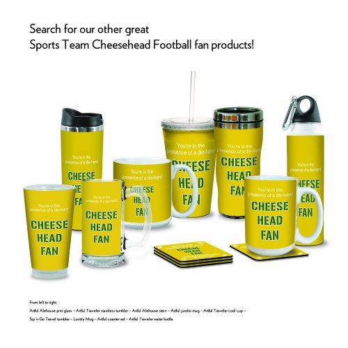 Tree-Free Greetings VB48119 Football Fan Artful Traveler Stainless Steel Water Bottle, 18-Ounce, Cheesehead