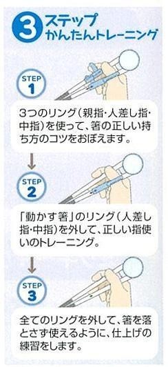 どこでも練習!!携帯に便利な専用ケース付き♪始めから正しい持ち方で、お箸を落とさず使えます。お子様の練習意欲がくじけにくい!指にやさしいシリコン製のソフトリングです。 |
