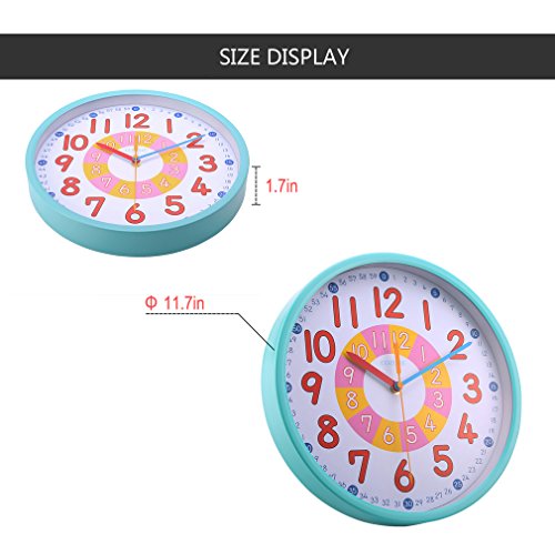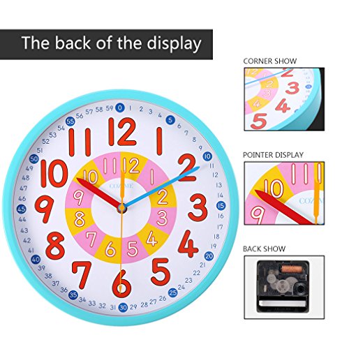 -. Title : COZIME Kid’s Wall Clock 12 Inches Silent Movement Bedroom Clock, Large Number Display Simple and Clear to Tell Time