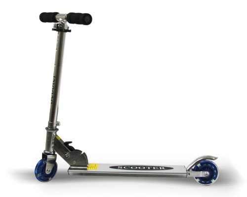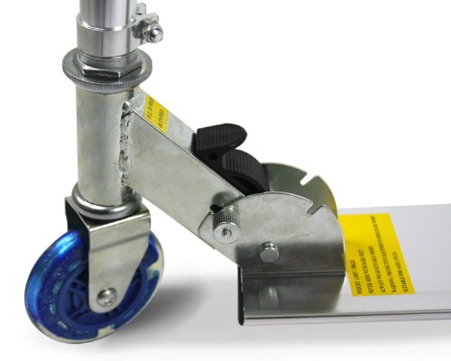 -. Feature : Aircraft-grade aluminum head tube and folding mechanism / Chrome color / 130-pound capacity / Rear fender brake / Rolling with Blinking Lights in the Wheels