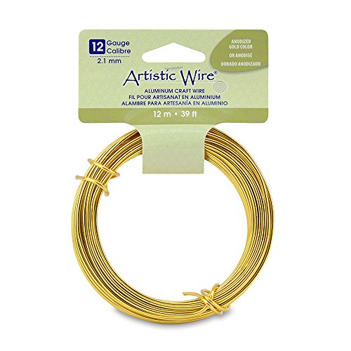 Artistic Wire 12 Gauge Round Anodized Aluminum Craft Wire, 39.3', Gold