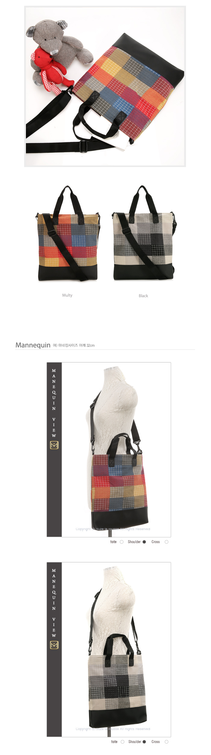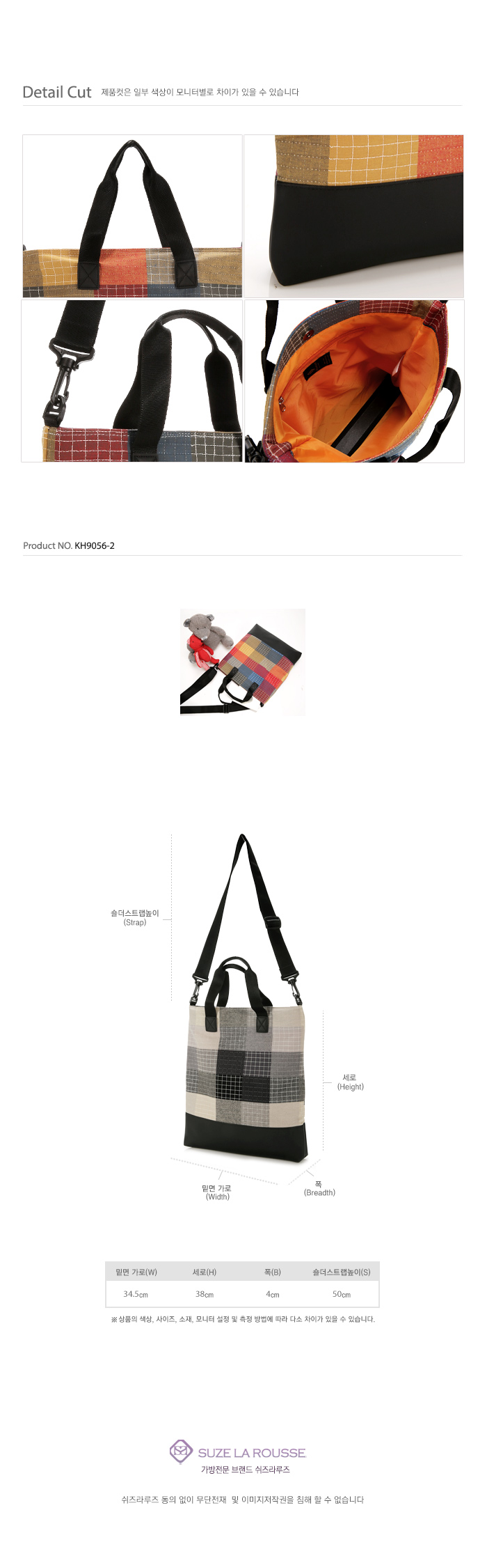 ㆍ사이즈(cm) : 34.5(가로W)X38(세로H), 4(폭), 15(토트 높이), 50(크로스끈 높이)
