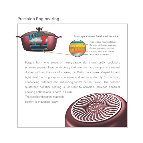 -. Feature : Made with forged aluminum technology / Ceramic, reinforced nonstick surface / Includes 2 cotton pot holders with silicone grip / Dishwasher-safe / Oven-safe up to 550 degrees F