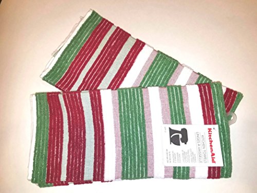 KitchenAid TerryCloth Kitchen Towel Set with Horizontal Christmas Colors Stripes