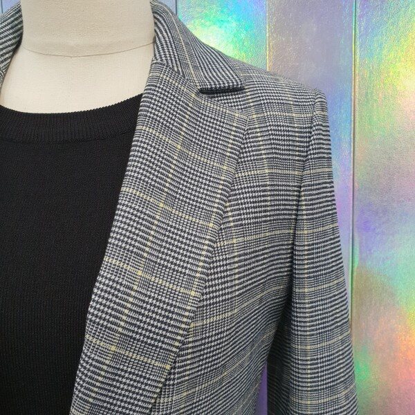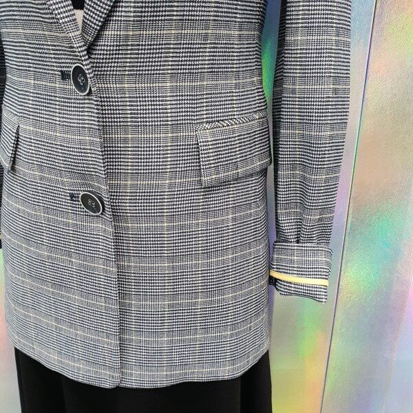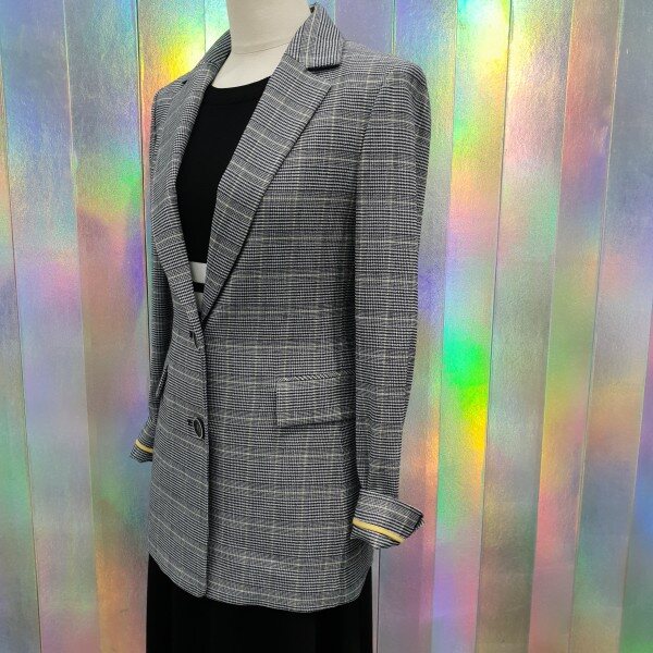 가볍지만 선이 잡혀있어 격식있는자리나 오피스룩에도 맞춤인 아이템입니다모던하고 세련된 무드의 체크자켓입니다