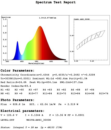 Full range dimmable (10-100%). No stroboscopic effect. No UV, no IR rays. Mercury Free. High quality LED chip and power supply for lamp longevity. Lifetime 35,000 hours (24 year 4 hour/day). 3 years warranty.