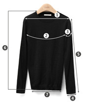 尺码 ①肩宽 ②胸围 ③袖臂围 ④袖口围 ⑤袖长 ⑥衣长 ⑦下摆围