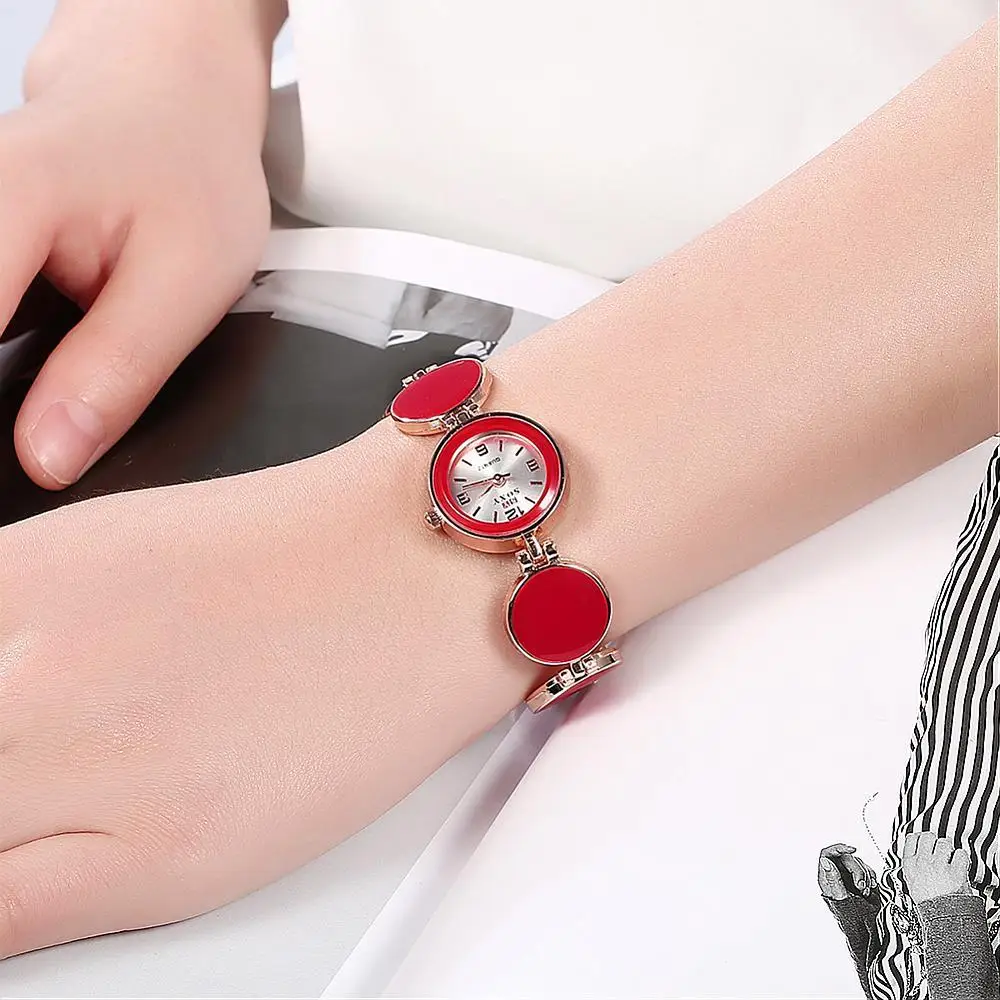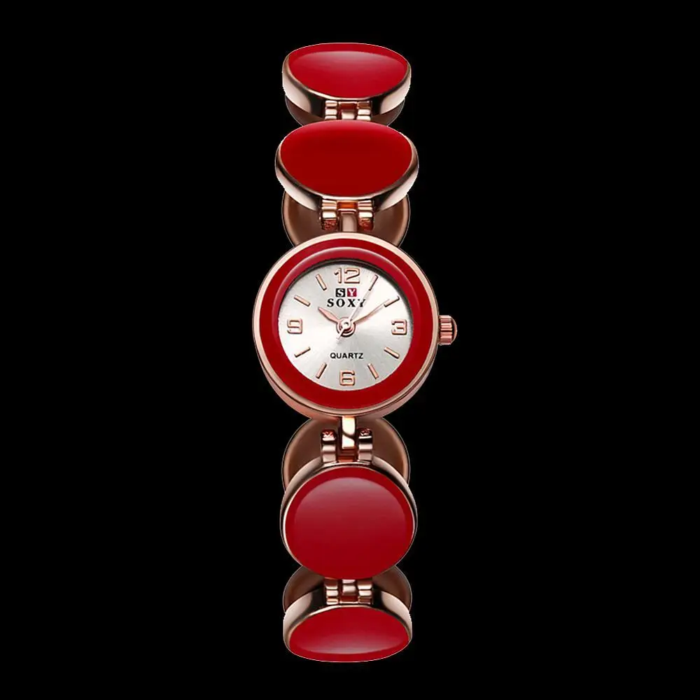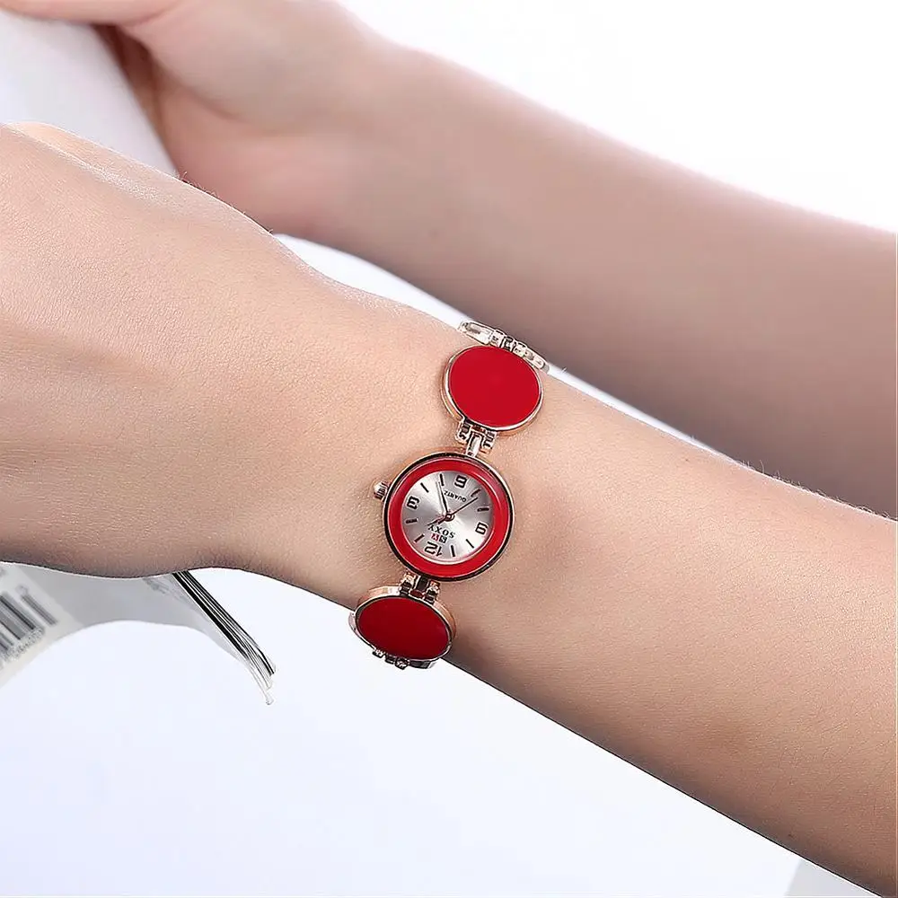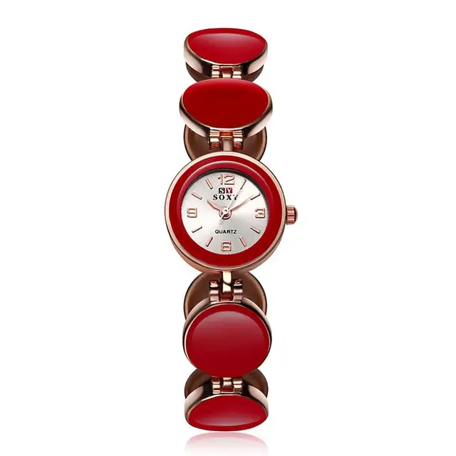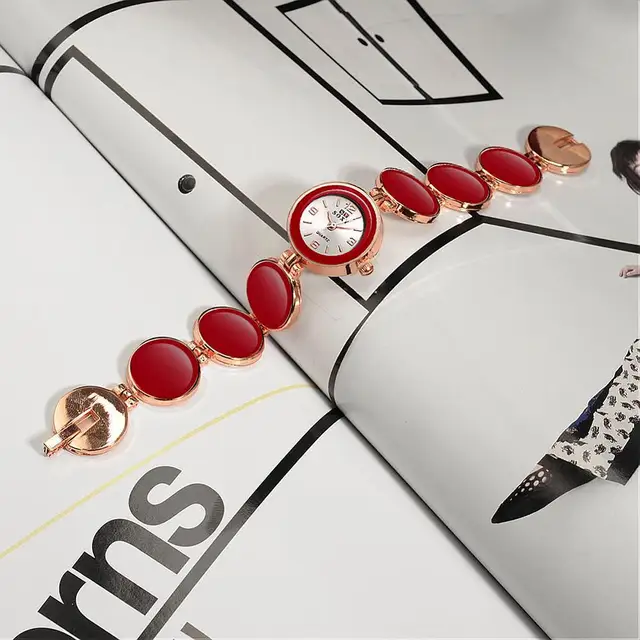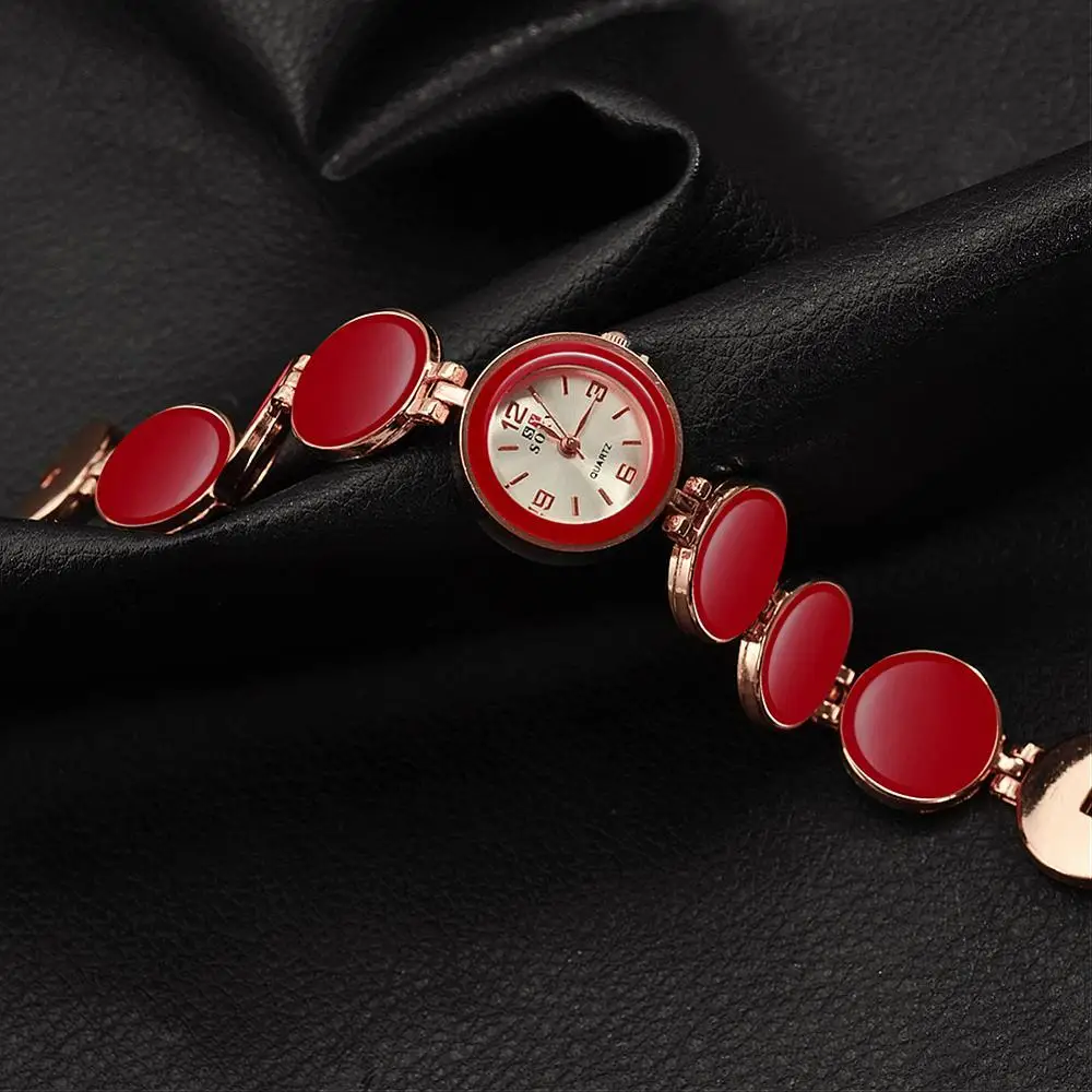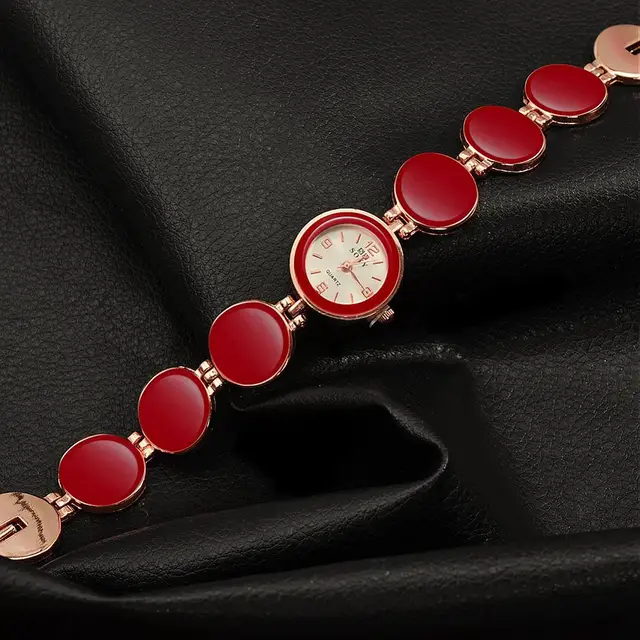 | [해외] 여성 팔찌 시계, 합금 석영 유리 시계, 레드, 로즈 골드, 195 미리메터 |