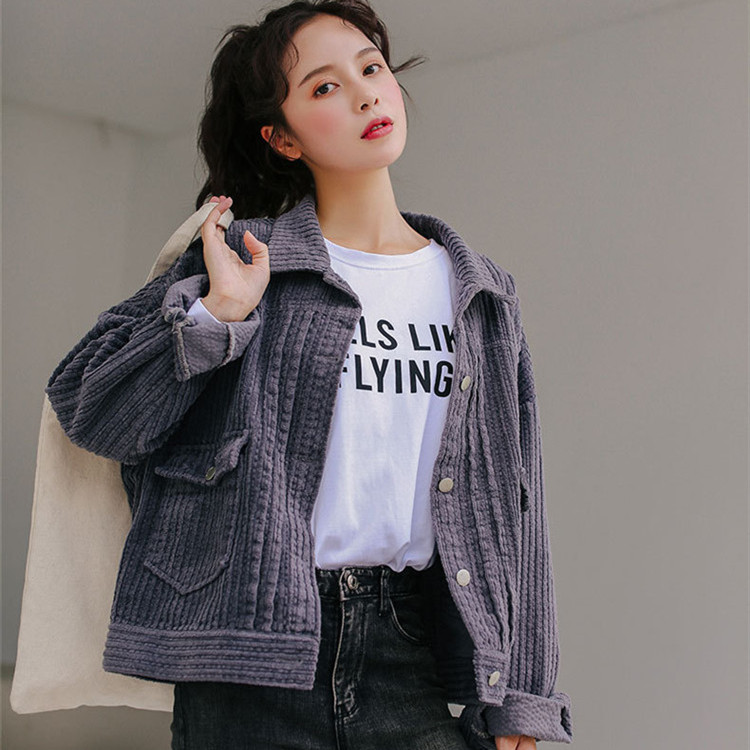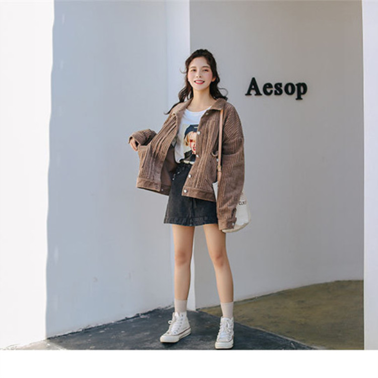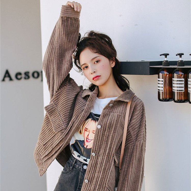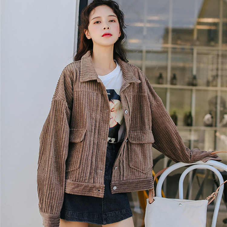 ★コーデュロイ ジャケット レディース 長袖 薄手 アウター コールテン トップス カジュアル おしゃれ コーデ ライトブラウン 2019020819★