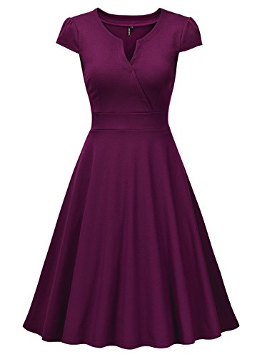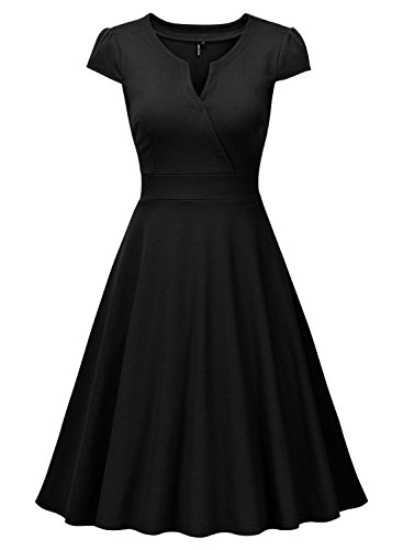 Retro V Neck Cap Sleeve 1950'S Cocktail Party Swing Dress