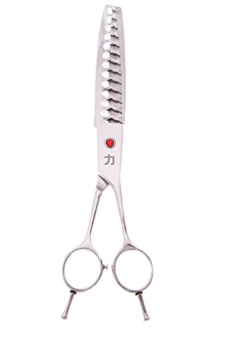 Product DescriptionJapanese 7.5" Stainless Steel 13 tooth chunkier with opposing handles, red gemstone adjustable tension screw and double finger rest.0
