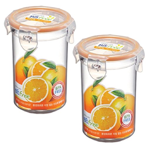LOCK & LOCK 1.3 Cups Bisfree Round Container, Clear with Orange Silicon Lid Pack of 2