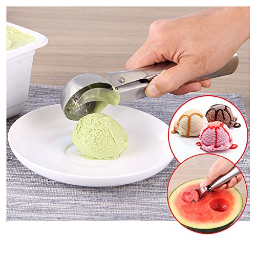 HaloVa Ice-Cream Scoop Multi-function Stainless Steel Watermelon Scooper, Digging Spoon with Trigger for Ice Cream and Fruit, Good Kitchen Helper