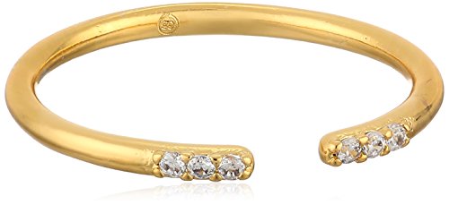 Tube bangle cuff in gold-plated finish featuring pave-set cubic zirconia stones at ends