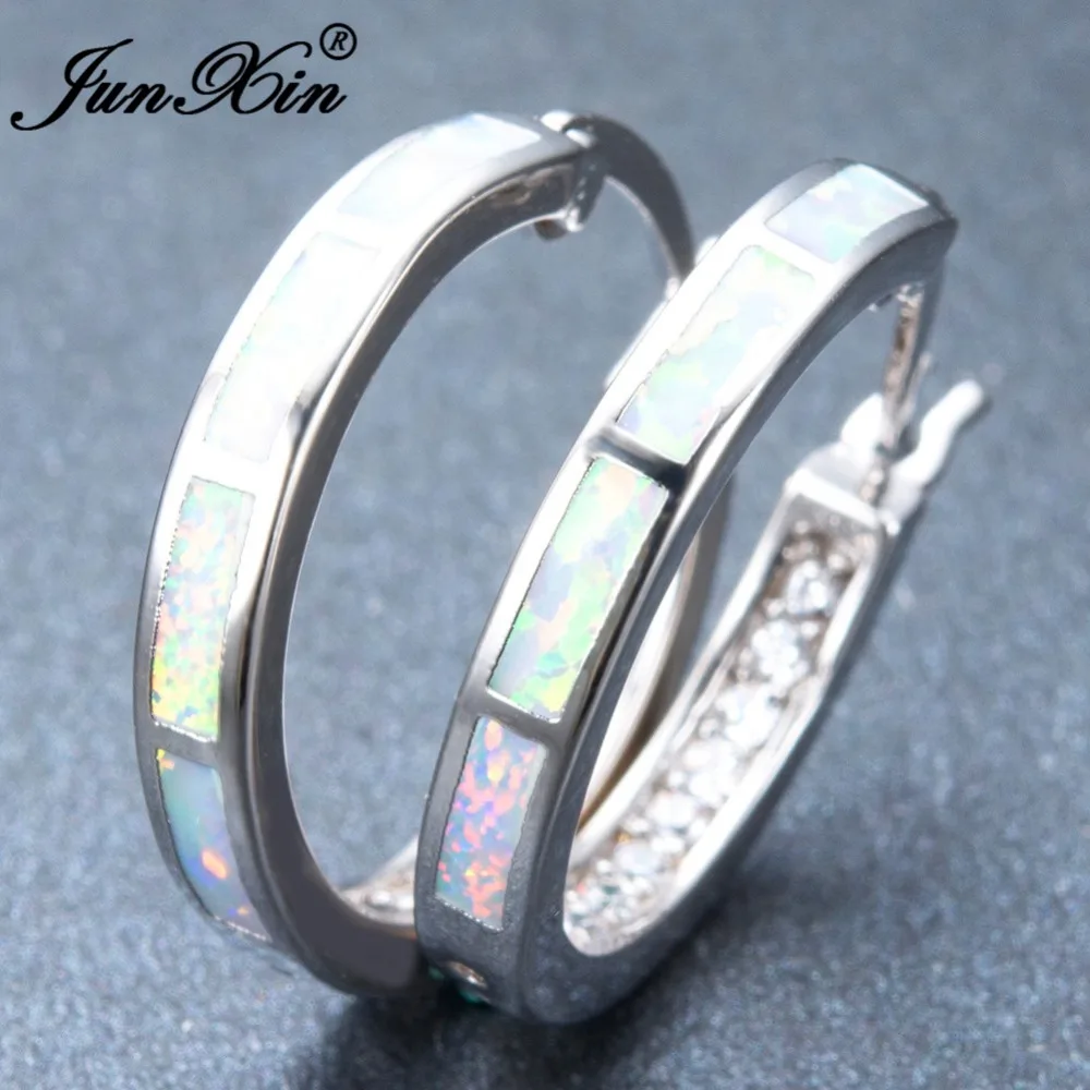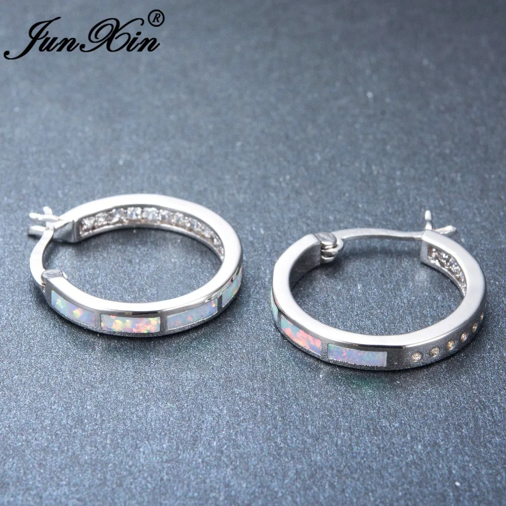 Hoop Earrings:Wedding/Engagement/Party/925 Sterling Silver Filled Opal Hoop Earrings