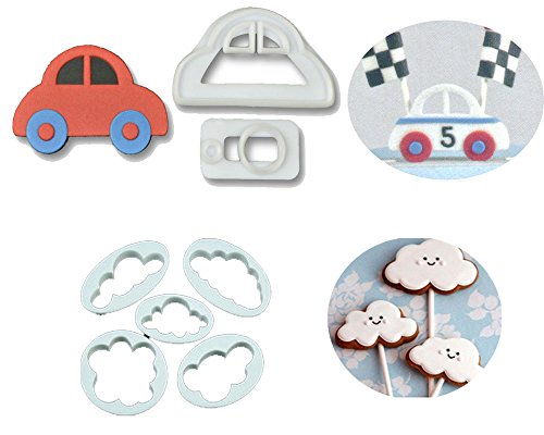 (Set of 7)The Easiest Car Cookie Cutter Set,White Clouds Cookie Cutter Mould,Cup Cake Decorating Gumpaste Fondant Mould,Cute Car Cutter