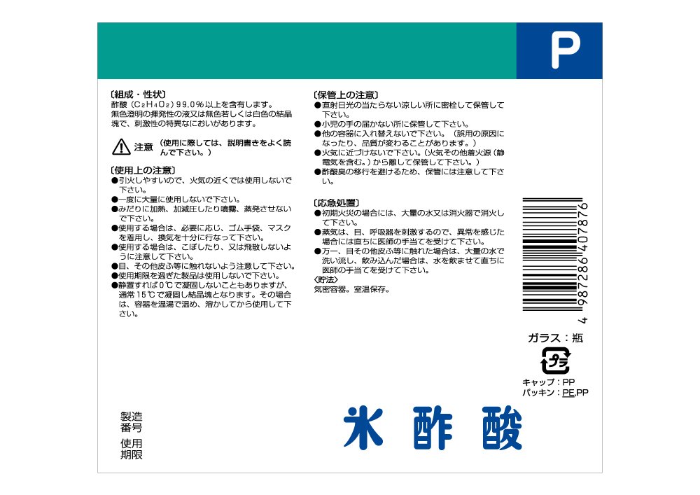 It contains 99.0% or more of acetic acid (C2 H4 O2).