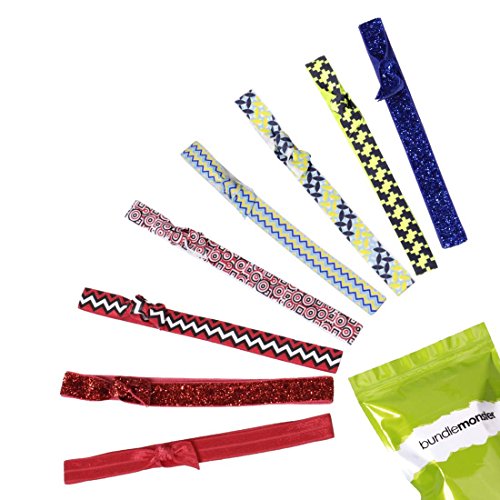- Feature : Set features 8 - 1.5 cm wide hair ties with various colors and designs. / The diameter of these bands is 4.5 in. The length, when laid flat, is 7 in. unstretched. / Made with a slightly elastic fabric so it can stretch as needed. Some designs feature glitter. / Sets are pre-packaged and sold as pictured in the listing. / Not all sets are the same, view selection menu carefully to check what you are ordering.
