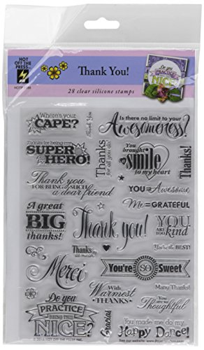 -. Binding : Misc. -. Brand : Hot Off The Press -. Color : Clear -. EAN : 0035788011894 -. Feature : Create beautiful homemade cards and accents for scrapbook pages / Silicone based and will not turn yellow / The product is easy to use -. Label : Hot Off The Press -. Manufacturer : Hot Off The Press -. Model : 1189 -. MPN : 1189 -. NumberOfItems : 1 -. PackageQuantity : 1 -. PartNumber : 1189 -. ProductGroup : Art and Craft Supply -. ProductTypeName : HOME -. Publisher : Hot Off The Press -. Size : 6" x 8" -. Studio : Hot Off The Press -. Title : Hot Off The Press 1189 Acrylic Stamps, 6" x 8", Thank You!, Clear -. UPC : 035788011894