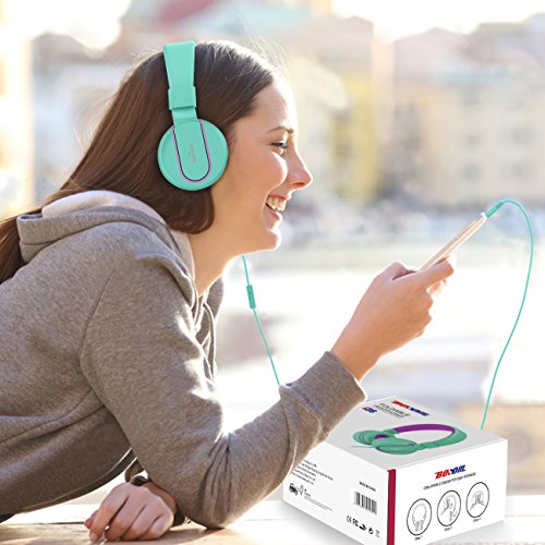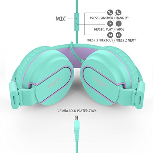 Besom i36 Teens Headphones with Microphone Stereo Lightweight Adjustable Foldable Headset for Cellphones Smartphones Laptop Computer Desktop PC Mp3/4(Green Purple)