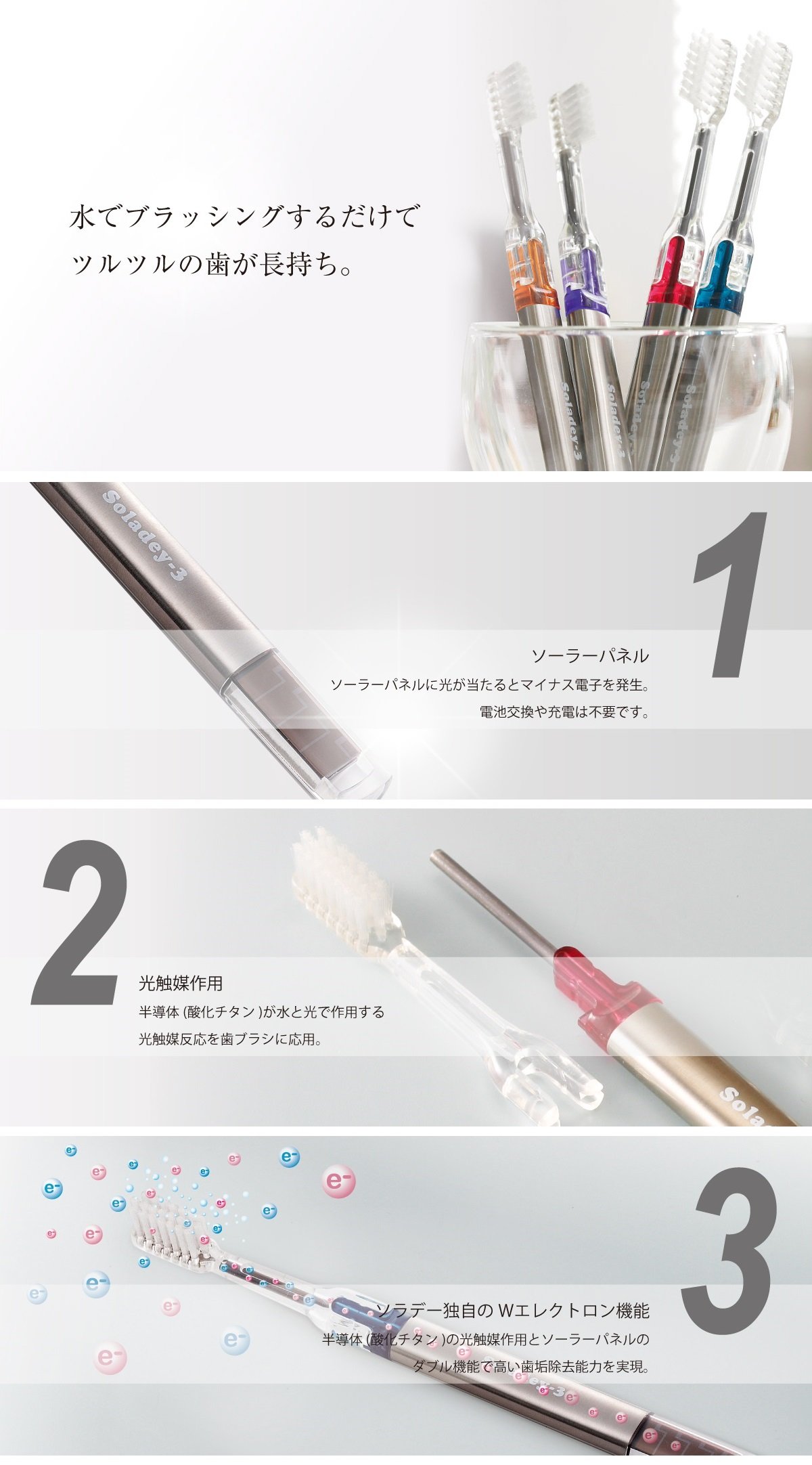 · Make it easier to drop with the power of negative electrons generated from the world's first TiO 2 semiconductor + solar panel.