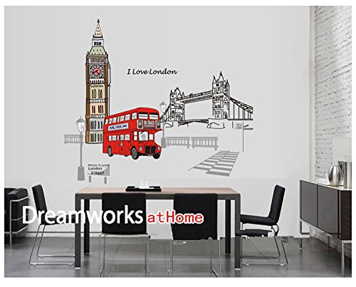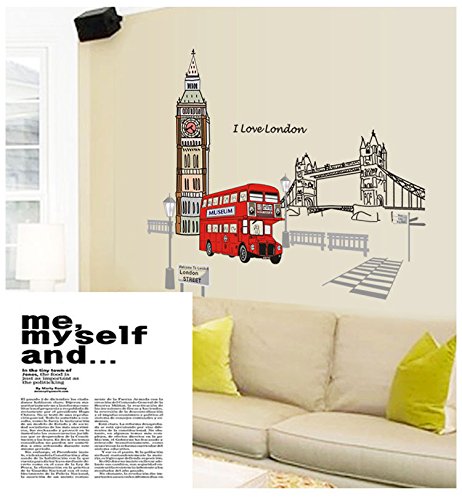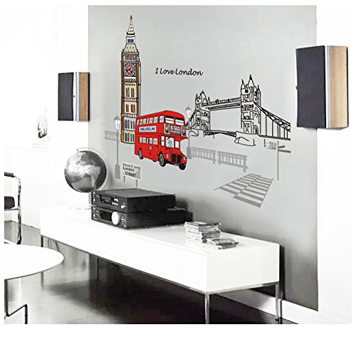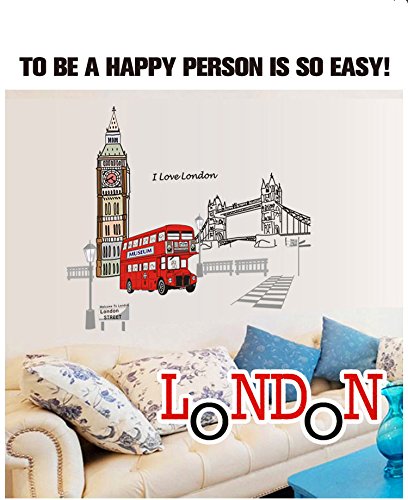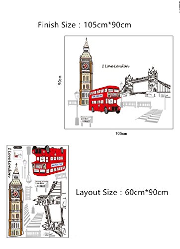 London Bus Big Ben Bridge Wall Stickers DIY Mural Art Decal Self Adhesive Removable PVC Wall Paper Decor for Bedroom Living Room