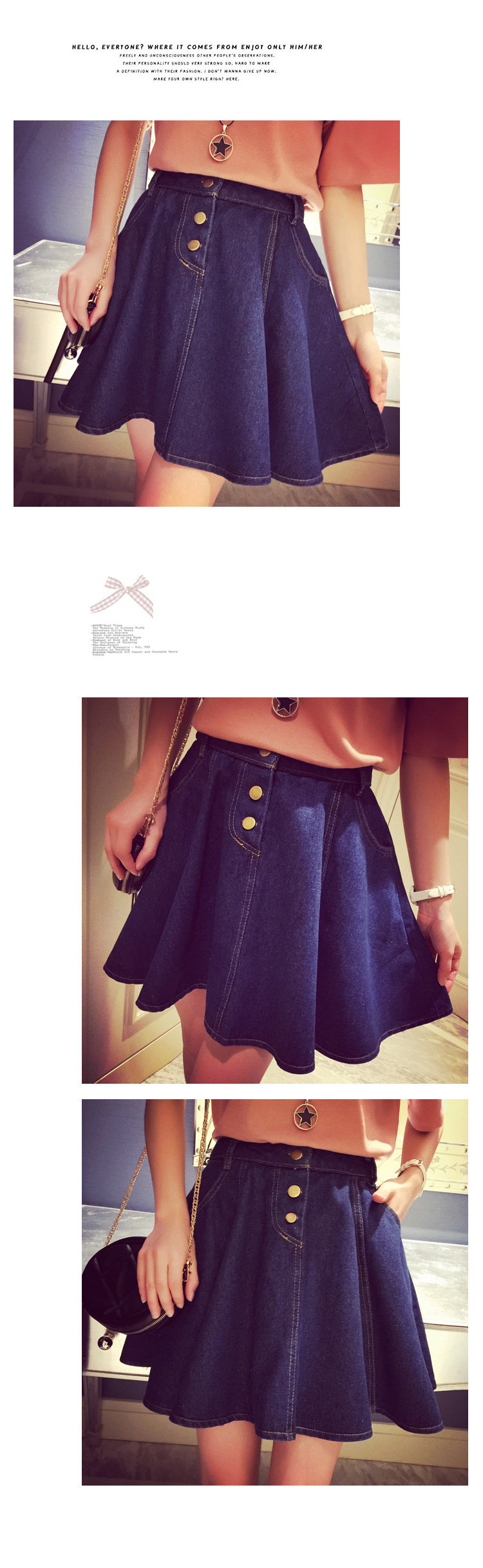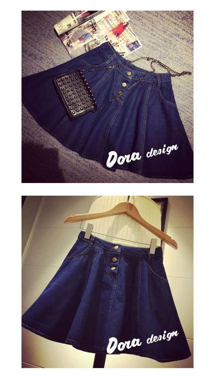 A) Product Code: 986783 High Waist Button with Pocket A Line Jeans Mini Skirt |
