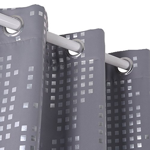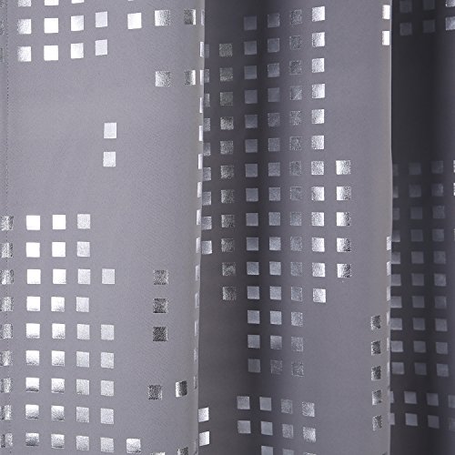Deconovo Square Silver Dots Foil Print Blackout Curtain, brings a comfortable and lively atmosphere in your home. Neutral background color bring fabric an incredible beauty. These curatins are stylish and have a unique design. Made of 100% polyester, they are silky, soft, drapery and very pleasant to touch when compared to the other curtains. All seams are nice and straight, no loose threads. Floral patterns also have no visual defects. Overall, it makes the curtain hang nicely and gives an expensive look. They are durable, the fabric is not at all flimsy, and they are made to last for a long time! They are super easy to hang.