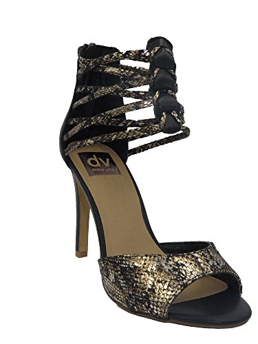 Dv By Dolce Vita Serafine Black Gold Leather Open Toe High Slim Heels Shoes