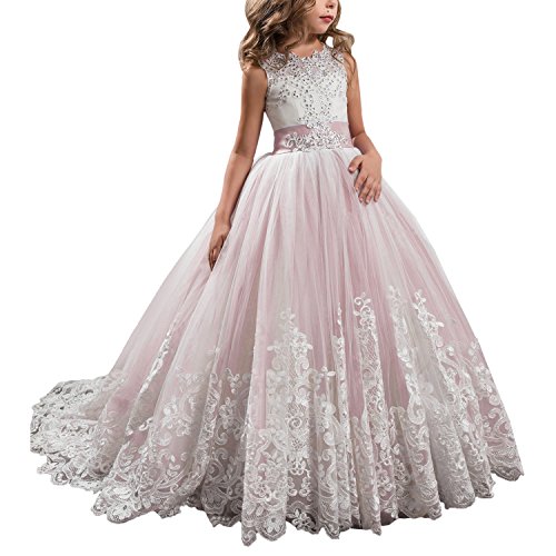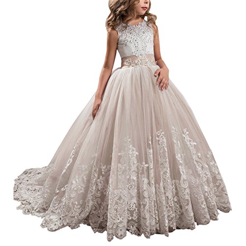 4.Fabric and Feature:If you need this dress to be more puffy, please prepare a crinoline for your girl,this princess girls dress with delicate lace is suitable for formal occasion,such as wedding party, graduation party.
