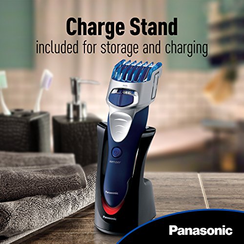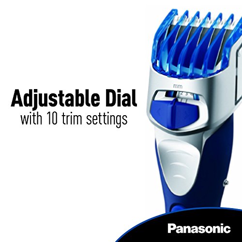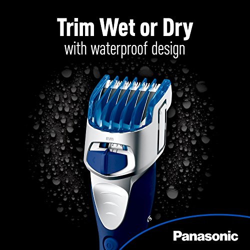 -. Feature : Panasonic electric beard and facial hair trimmer for men uses durable, super-sharp 45° angle stainless-steel blades to cut quickly and cleanly for comfortable, non-irritating hair and beard trimming. / The Panasonic beard trimmer is designed with a quick-adjust dial and includes two comb attachments to provide 10 precision settings for personalized hair lengths. / An ergonomic design with rubberized grip provides total comfort and control while trimming and clipping. / Cordless, fully immersible mens beard trimmer and hair clipper lets you groom in the shower or dry on-the-go for complete wet dry convenience / Easy-open water drain cleans trimmer in seconds under running water; includes cleaning brush, AC charging stand and universal voltage for travel.