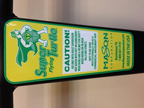 -. Binding : Toy -. Brand : Mason Corporation -. Color : Green -. EAN : 0687414500106 -. Feature : Proudly made in USA for ages 3-12 up to 200 lb. / Super version of the original flying turtle / Super features include "rams-horn" handlebars and buffer wheels / Which protect hands, riding surface and handlebars / No pedaling, no motor, no batteries -. IsAdultProduct : 0 -. Label : MasonCorporation -. LegalDisclaimer : Recommended adult supervision. Not for use on hills. Use only while sitting properly with feet on the handlebars. Always wear shoes and a helmet. -. Manufacturer : MasonCorporation -. Model : R-STG -. MPN : R-STG -. PackageQuantity : 1 -. PartNumber : R-STG -. ProductGroup : Toy -. ProductTypeName : TOYS_AND_GAMES -. Publisher : MasonCorporation -. Studio : MasonCorporation -. Title : Mason Corporation Super Flying Turtle Scooter, Green -. UPC : 687414500106