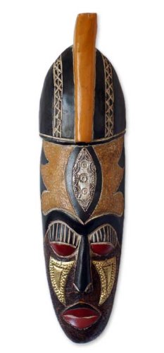 NOVICA Decorative Ghanaian Large Sese Wood and Aluminum Mask, Multicolor, 'Festive Happiness'