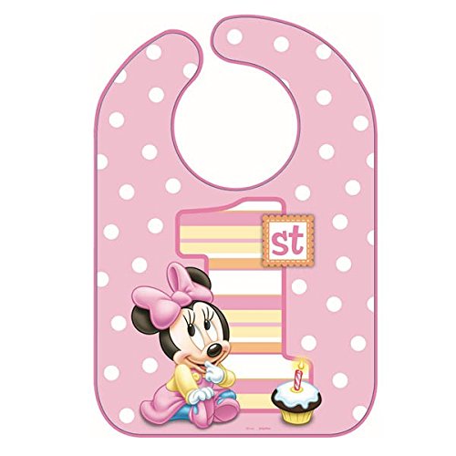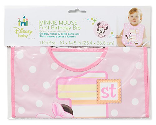 -. Binding : Baby Product -. Brand : Napkins -. ClothingSize : One-Size -. Color : Pink -. Department : baby-girls -. EAN : 0726528288743 -. Feature : 1 vinyl bib / Measures 10 in. x 14 in / Velcro closing for easy wear / Bib features baby Minnie with a large striped number one and a cupcake on a pink background with white polka dots / Perfect American Greetings party supplies for a baby's first birthday party or Minnie Mouse-themed party -. IsAdultProduct : 0 -. Label : Napkins -. Manufacturer : Napkins -. Model : AM-439578 -. MPN : 201229 -. NumberOfItems : 1 -. PackageQuantity : 1 -. PartNumber : 201229 -. ProductGroup : Baby Product -. ProductTypeName : BABY_PRODUCT -. Publisher : Napkins -. Size : One Size -. Studio : Napkins -. Title : Minnie's 1st Birthday Baby Bib -. UPC : 726528288743