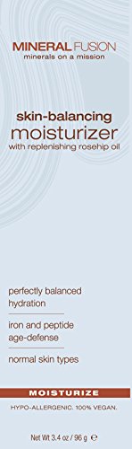-. Binding : Health and Beauty -. Brand : Mineral Fusion -. EAN : 0885859862906 -. Feature : Perfectly balanced hydration for normal skin types / Smooth on clean skin May be used morning or night / With replenishing rosehip oil / Compassion please join us in our support of the national coalition against domestic violence -. IsAdultProduct : 0 -. Label : Mineral Fusion -. Manufacturer : Mineral Fusion -. MPN : 3107 -. NumberOfItems : 1 -. PackageQuantity : 1 -. PartNumber : 3107 -. ProductGroup : Beauty -. ProductTypeName : BEAUTY -. PublicationDate : 2012-05-07 -. Publisher : Mineral Fusion -. Size : 3.4 oz -. Studio : Mineral Fusion -. Title : Mineral Fusion Natural Brands Skin Balancing Facial Moisturizer With Replenishing Rosehip Oil -. UPC : 885859862906