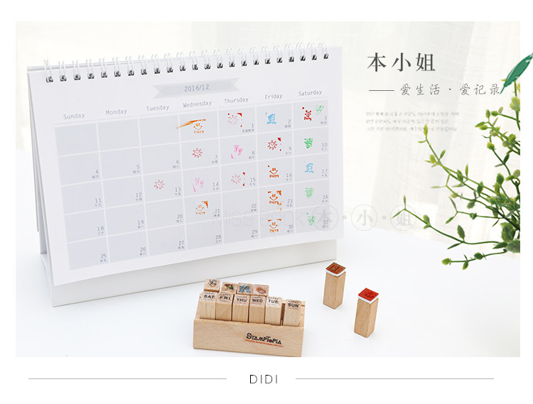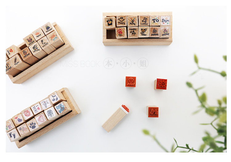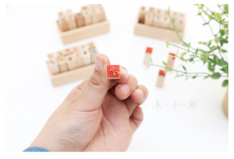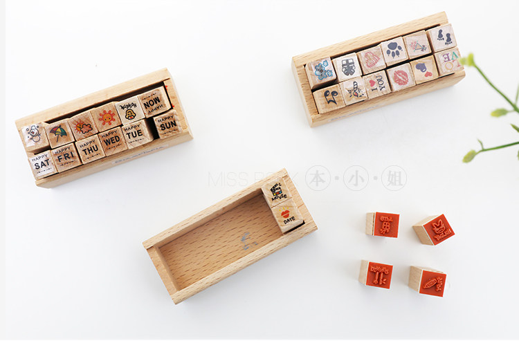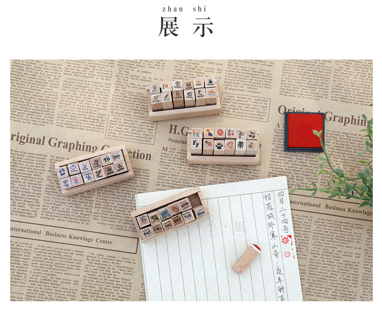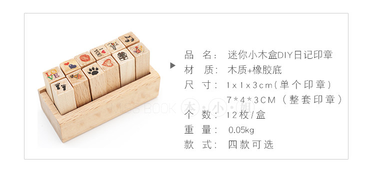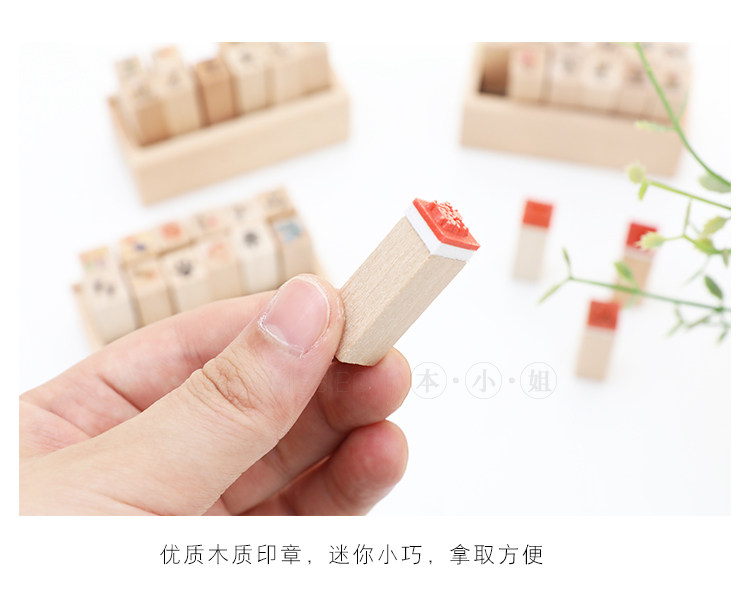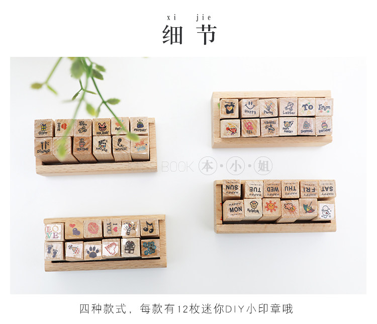 简约木质可爱迷你小印章 DIY日记印章 组合装小印章12入
