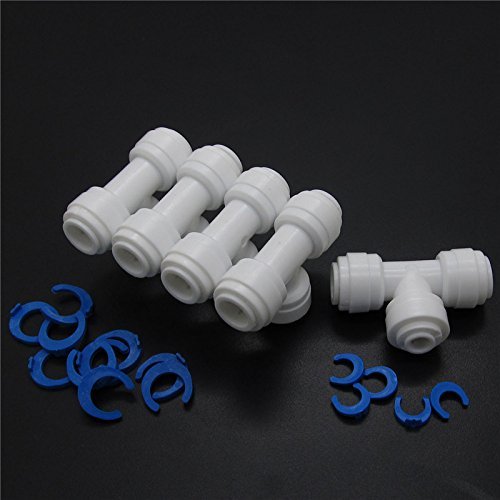 Malida 3/8"-1/4" Tee Quick Connect Filtered water fittings …+ 15 Locking clips Ro Water Filter Pack of 5