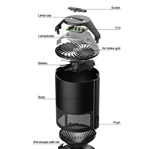- One button easy operation to clean the mosquito. Dead flies get trapped in a neat hidden tray located at the bottom of the device. To clean, only need to press the push button and you can get rid of all dead mosquitoes and flies. Safety net to prevent touching the motor, you can rotate and disassemble the net and clean it