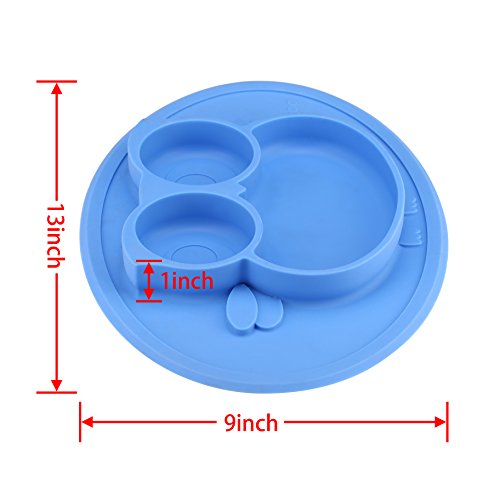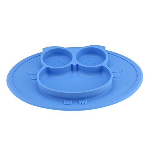 Kirecoo Babies Highchair Feeding Tray Round Silicone Suction Owl Placemat for Children, Kids, Toddlers,Kitchen Dining Table with Built in Plate and Bowl (Blue)