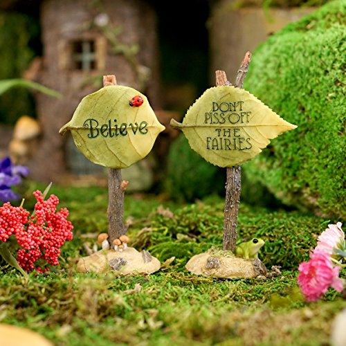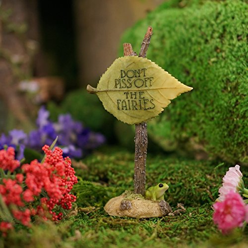 Top Collection Miniature Fairy Garden and Terrarium "Don't Piss Off The Fairies" Sign Figurine