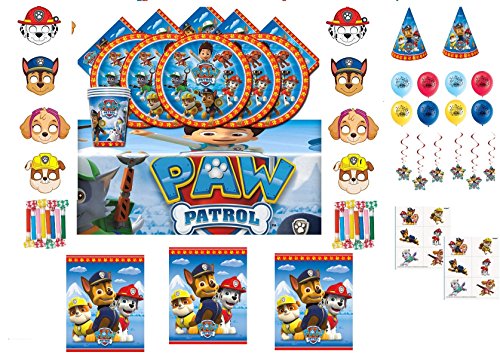 -. Title : Paw Patrol Deluxe Party for 16 Guests - Includes Plates, Cups, Napkins, Birthday Hats, Balloons, Masks, Loot Bags, Hanging Swirls, Tattoos, Tablecovers, Blowouts - Decorations Supplies