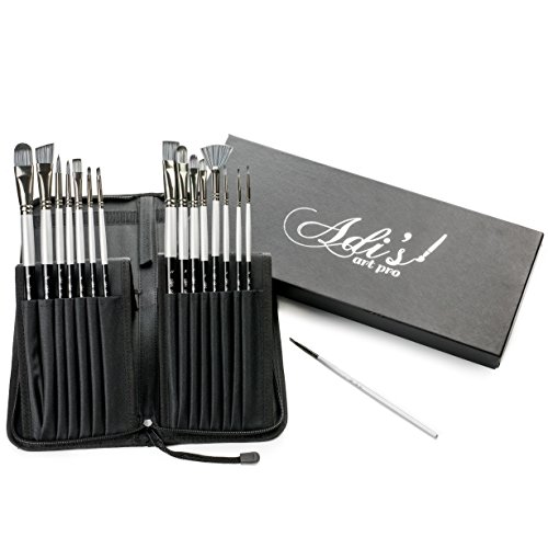 - EXHAUSTIVE PAINT BRUSH SET: Adi’s art pro 15-piece art paint brushes set comes with (3) angle brushes, (2) flat paint brush sizes, (4) filbert paint brushes, (4) round paint brush sizes, (1) rigger brush, and (3) fan brushes. We’ve also included a free signature brush pen to give you greater bang for your buck.